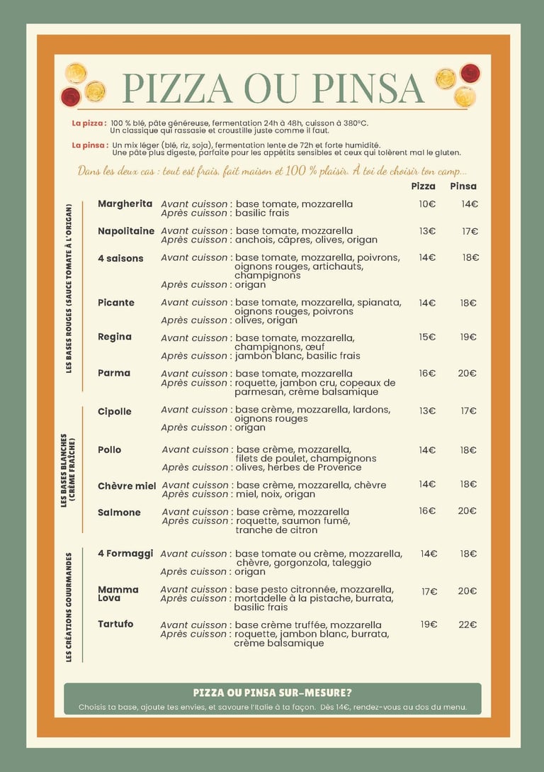 Si tu es un amateur de pizza, la pinsa est une découverte incontournable. Légère, digeste et savoureuse, elle offre une alternative raffinée tout en restant fidèle aux racines de la cuisine italienne.